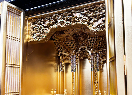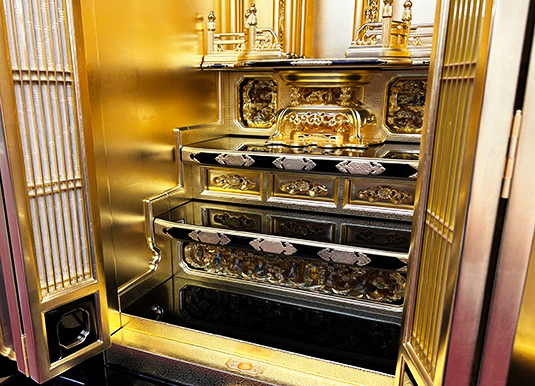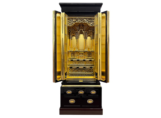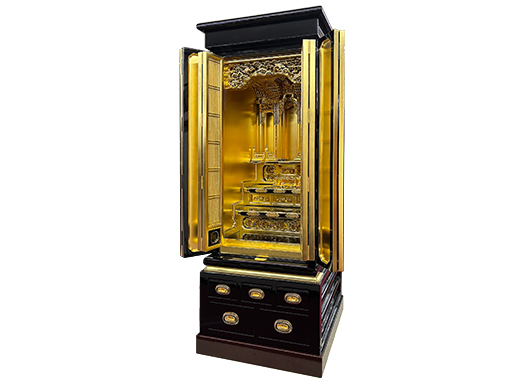 HOME > 商品一覧 > 純金塗仏壇 > 台付タイプ > 国産仏壇尺六型-仏具付