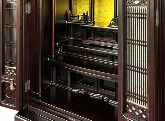 HOME > 商品一覧 > 唐木仏壇 > 台付タイプ > 18号 水連-仏具付